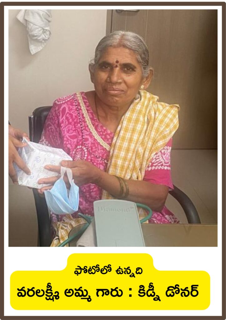 ఈ మధ్యకాలంలో వరలక్ష్మీ గారు కిడ్నీ ట్రాన్స్ప్లాంటేషన్ ఆపరేషన్ చేయించుకున్నారు ..తన అనుభవాన్ని మరియు ఆనందాన్ని ఇలా మాతో పంచుకున్నారు : “ నా పేరు వరలక్ష్మి నేను రీసెంట్ గా కిడ్నీ ట్రాన్స్ప్లాంటేషన్ ఆపరేషన్ చేయించుకున్నాను. నాకు ఆపరేషన్ చేసిండేది డాక్టర్ క్రాంతి కుమార్ సార్.